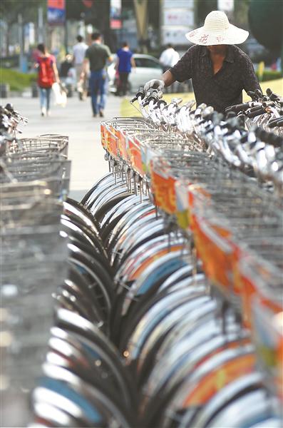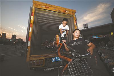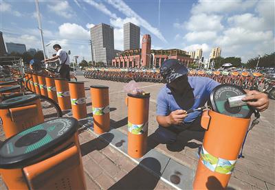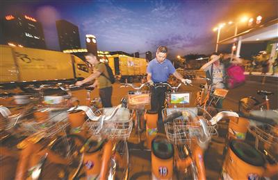 9月10日17點,南京興隆大街地鐵站公共自行車管理員老匡和老戴迎來了一天最忙碌的時候,他倆在空樁和轉運車之間來回穿梭,不一會兒就滿身大汗。與此同時,轉運車奔波于各站點之間,根據(jù)流量調整車輛配置。