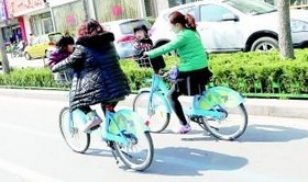 11月4日,記者在奎文區(qū)鳶飛路與光明街交叉口附近,看到一位婦女騎著一輛綠色的公共自行車由西向東行駛,車子前方的車筐里坐著一名三四歲的小男孩。