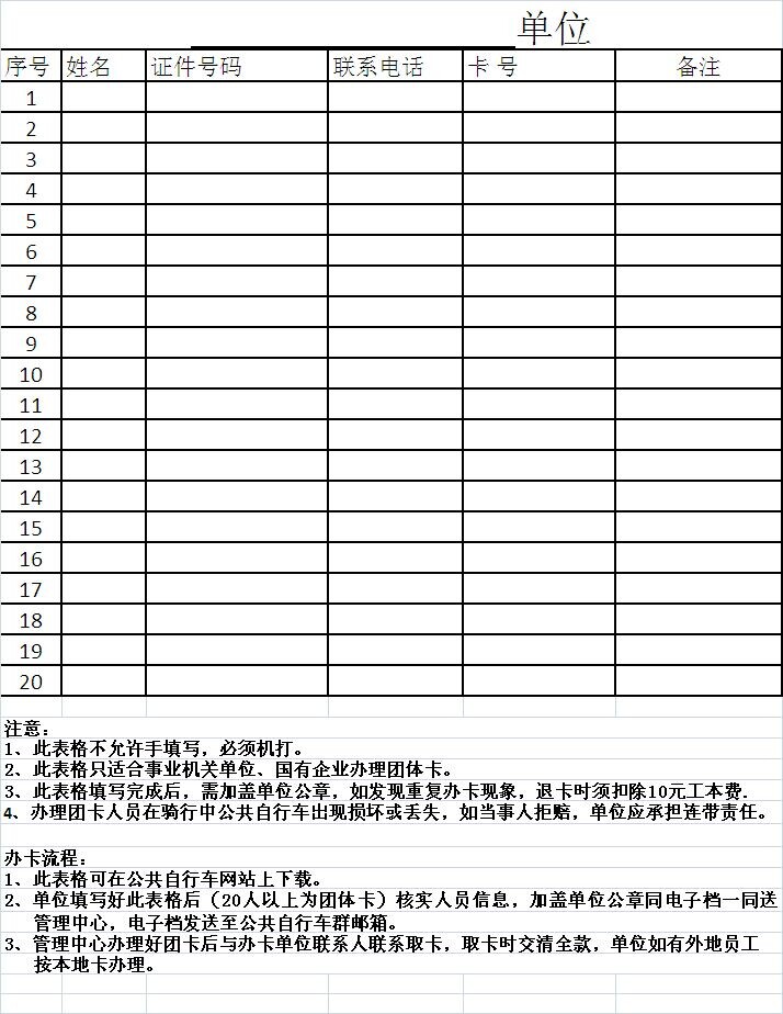 辦團體公共自行車卡,請按照以下要求辦理!