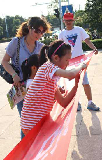 當(dāng)日下午3時(shí),實(shí)踐小隊(duì)騎著由永安公司提供的綠色公共自行車從河海大學(xué)北門出發(fā),途經(jīng)紫荊公園、中華恐龍園、新北萬達(dá)廣場。期間實(shí)踐小隊(duì),進(jìn)行了發(fā)放宣傳單、百人簽名等活動(dòng),截止晚上8點(diǎn),活動(dòng)圓滿結(jié)束。