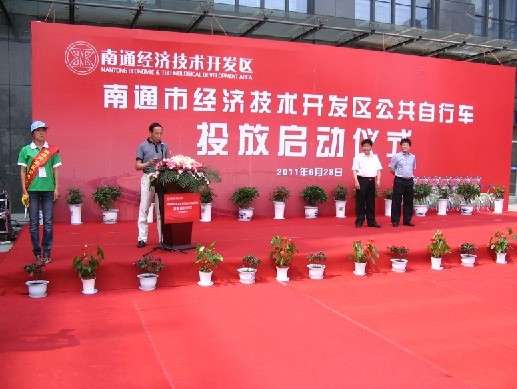 2011年6月28日南通經濟技術開發(fā)區(qū)公共自行車正式啟動,啟動儀式中管委會領導介紹了公共自行車建設情況,陳書記宣布公共自行車系統(tǒng)正式啟動,并有自行車騎行方隊巡游開發(fā)區(qū).