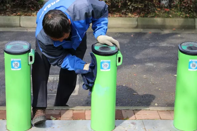 早上九點多,剛過上班高峰期,張叔叔就從包里拿出抹布仔細擦拭每一個鎖樁,他的包里還裝著日常能用到的修車工具,如果自行車出現(xiàn)一些小的情況,他就能現(xiàn)場進行簡單的修理。