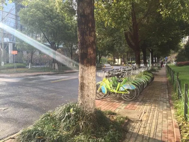 晚上七點多,天已經(jīng)漸漸暗下來,大家陸陸續(xù)續(xù)地下班回家,我們也來到了最后一站。小區(qū)的站點要保證充足的還車空位,張叔叔就開鎖把車子都搬到一邊鎖好。