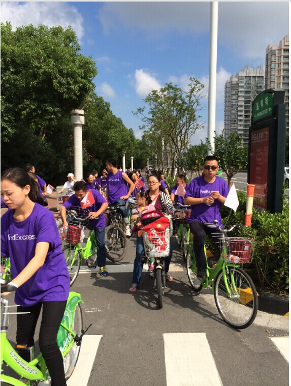 9月21日,蘇州聯(lián)邦快遞圍繞“關(guān)愛”的主題舉辦了一次“愛我城市,保護(hù)環(huán)境”的綠色騎行活動。在城市污染日趨嚴(yán)重的今天,志愿者們盡微薄之力呼吁市民愛護(hù)生存環(huán)境,保護(hù)我們的家園;同時也給高溫下辛勤工作的城市環(huán)境守護(hù)者送去一份關(guān)愛和清涼。