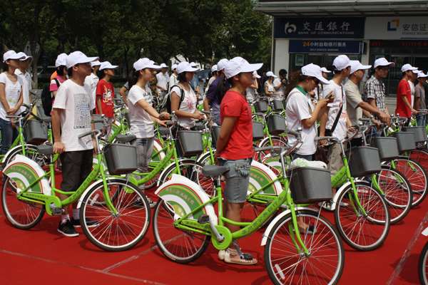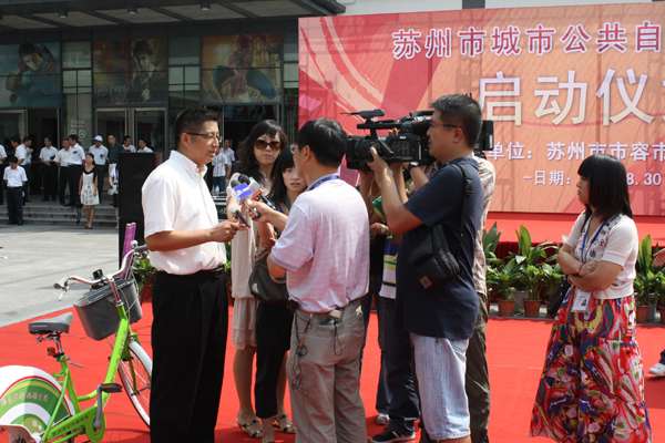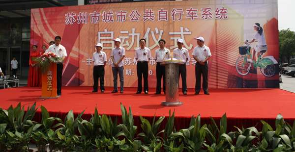 2010年8月30日,在蘇州金逸電影院廣場舉行了啟動儀式。廣場上集中停放著60輛嶄新的“綠色”公共自行車,在正式啟動之后,志愿者們做了首次體驗(yàn),紛紛騎上車,將車停放回各個停車點(diǎn)。首批投入200輛自行車,在主干道人民路沿線設(shè)11個站點(diǎn)。市民和游客分別繳納200元、300元押金即可辦理租車卡,在任一站點(diǎn)可刷卡租車,通借通還。市民卡第一小時免費(fèi),之后每小時1元。每輛車使用者都有2萬元的意外傷害保險。年內(nèi),蘇州還將建成第二批站點(diǎn),形成覆蓋居民區(qū)、公交站、商業(yè)街、酒店賓館、旅游景點(diǎn)的公共自行車網(wǎng)絡(luò)。