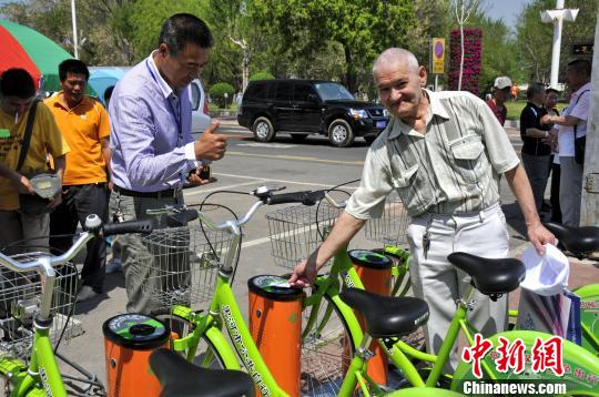 俄羅斯用戶在中國(guó)黑河刷卡租有樁“共享單車” 王殿杰 攝