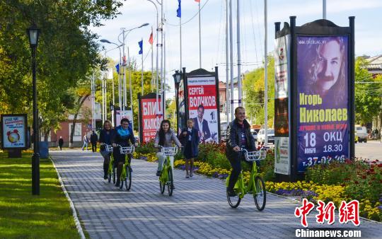 俄羅斯用戶在布拉戈維申斯克市騎車 王殿杰 攝