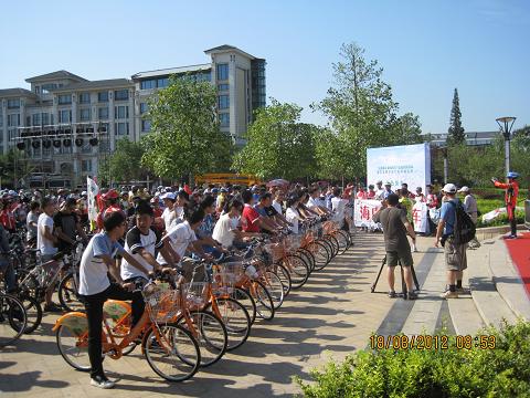 上午9點,200多名整裝待發(fā)的自行車青年愛好者們從石梅廣場出發(fā),隊伍沿虞山北路、楓林路、海虞北路、海虞南路、阜湖路、環(huán)城路、方塔街一路騎行,200多輛浩浩蕩蕩的自行車形成長長的車龍,吸引了不少市民的目光,也成為虞城道路上一條亮麗的風(fēng)景線。 經(jīng)過近一個小時的環(huán)城騎行后,車隊回到石梅廣場。大家又紛紛在“關(guān)愛城市、綠色出行”的橫幅上簽名,用實際行動支持綠色、低碳、環(huán)保的出行和生活方式。 不少參加活動的青年告訴記者,這樣的騎行活動不但可以增強身體素質(zhì),更重要的是從自身做起,踐行低碳環(huán)保生活,傳播綠色出行理念,從而喚起全社會來關(guān)愛我們的城市,保護共同的家園。市民李?。骸句浺簦何冶旧硐矚g騎自行車,現(xiàn)在組織這樣一個活動我覺得非常好,我會積極的參加。現(xiàn)在都提倡綠色出行,低碳環(huán)保的理念,我也會以這種理念來指導(dǎo)我的行動,比如能騎自行車就不開車,盡量少開車?!?/p>