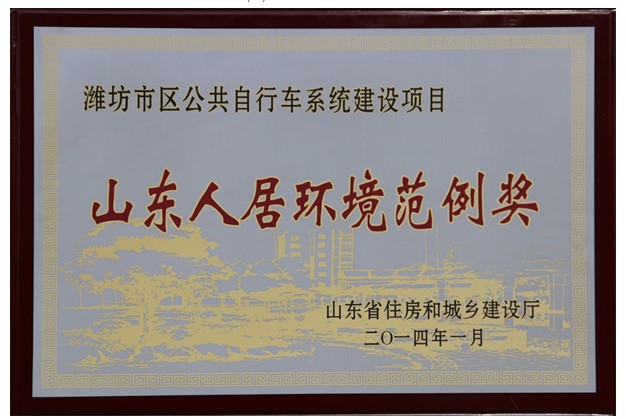 熱烈祝賀濰坊市區(qū)公共自行車系統(tǒng)建設項目獲山東人居環(huán)境范例獎!濰坊市公共自行車項目由常州永安公共自行車系統(tǒng)股份有限公司承建。