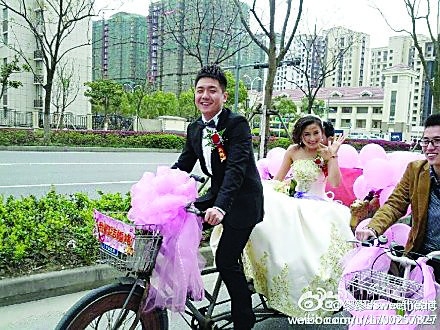 住在蘇州工業(yè)園區(qū)中海國際社區(qū)的網(wǎng)友“繆繆ssweetheart”因為一張婚禮圖片,在微博上引起“圍觀”,原因不僅是新郎新娘的婚車用上了三輪車,而且連送親的隊伍每人都騎上了公共自行車。這場綠色、低碳、環(huán)保的婚禮被很多網(wǎng)友和市民津津樂道,公共自行車的這一“新用途”也成為焦點。