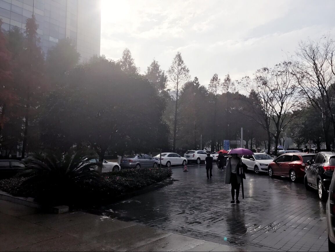 隨著白天的氣溫升高,霧氣逐漸消散。有心的市民發(fā)現(xiàn),下午出現(xiàn)了一點(diǎn)陽(yáng)光。然而奇妙的是,居然出現(xiàn)了一半晴天一半雨天的“太陽(yáng)雨”現(xiàn)象。