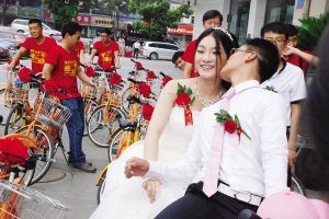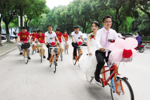 “我父母都覺(jué)得用汽車好,擔(dān)心公共自行車太寒酸?!毙”R的父母想給兒子一個(gè)體面的婚禮,打算借幾輛寶馬,一排寶馬開(kāi)出去,覺(jué)得很氣派。但小盧覺(jué)得還是公共自行車好,環(huán)保、低碳又浪漫,關(guān)鍵這樣的婚禮在吳江還是首次,肯定很難忘。