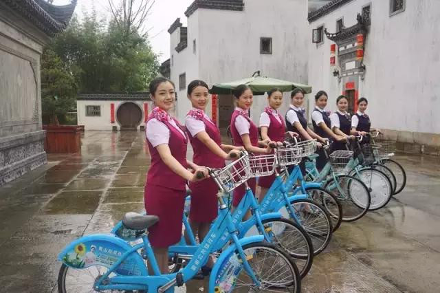 徽州公共自行車助力唐模迎接合福高鐵隨著合福高鐵通車時間的日益臨近,6月3日,由黃山市政府與南昌鐵路局聯(lián)合主辦的“高姐帶你游黃山”活動拉開序幕。合福高鐵百家媒體及高姐等一行在3號當(dāng)日乘高鐵抵黃山北站,在黃山召開合福高鐵推介會,并于當(dāng)天下午赴唐模景區(qū)采風(fēng)。到達(dá)唐模后,合福高鐵百家媒體體驗團(tuán)與高姐一行依次游覽了唐模水街、高陽橋、小西湖等景點,并重點參觀了唐模法國家庭旅館。綿綿細(xì)雨中,她們漫步在唐模,行成了一道獨特的顏值風(fēng)景線!本次活動使用的公共自行車堪稱活動的一大亮點,清新美觀的公共自行車、品貌端莊的高姐與古色古香的唐模鎮(zhèn)構(gòu)成了一副唯美的畫卷。