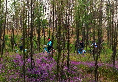 4月18日,永安員工伴著和風(fēng)絮語,單程騎行10公里,來到新龍森林公園進行了一次“森呼吸”。鳥語花香,一輛輛顏色鮮艷的公共自行車在林蔭道間穿梭,永安員工沿路播撒著歡聲笑語,與大自然來了一次親密的接觸。