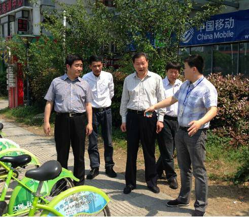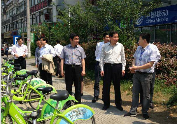 蘇州市政協(xié)主席于2015年4月27日在蘇州市容市政局金局、湯局的陪同下,調(diào)研蘇州公共自行車,運(yùn)營公司劉總為政協(xié)主席介紹蘇州公共自行車的發(fā)展及規(guī)劃。
