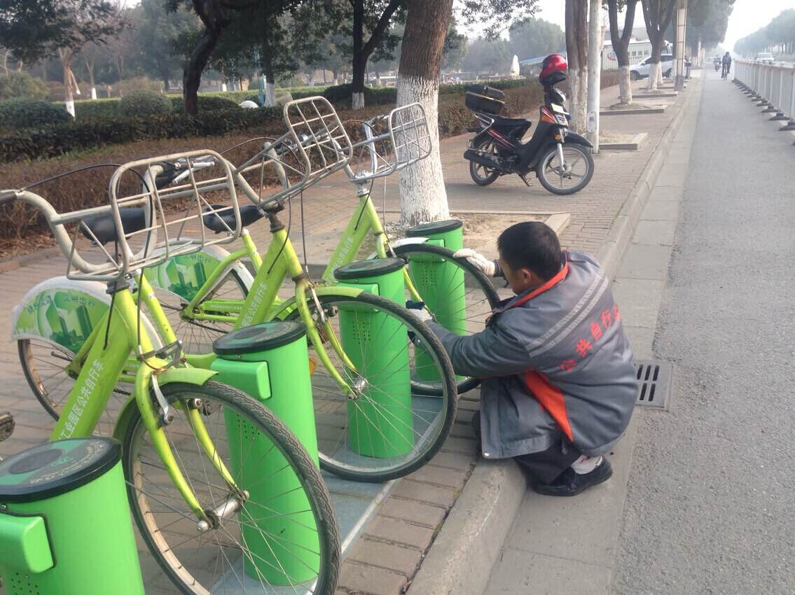 我們公司經(jīng)過商討決定,利用冬季3個月時間,全體管理層全部出動,分組分片,并召集部分現(xiàn)場工作人員,進(jìn)行集中維護(hù),主要包括自行車的擋板車貼更換,自行車的保潔,修補(bǔ)綠漆及車樁維護(hù)等工作。