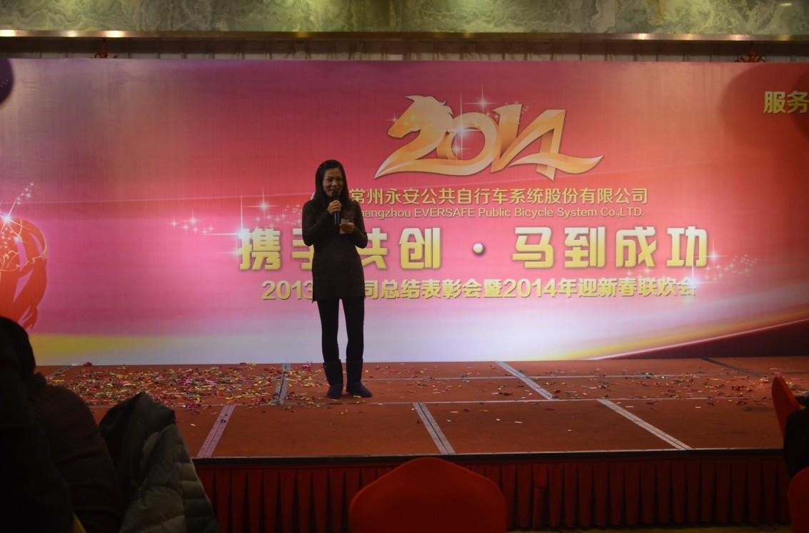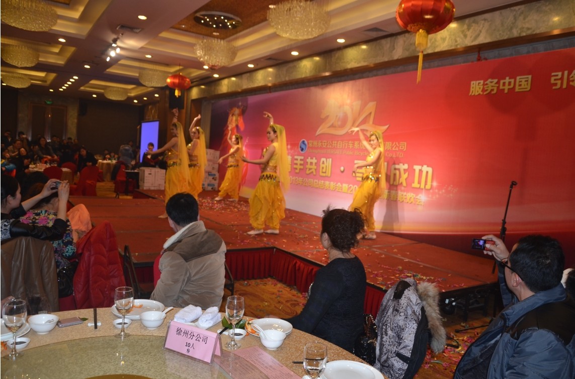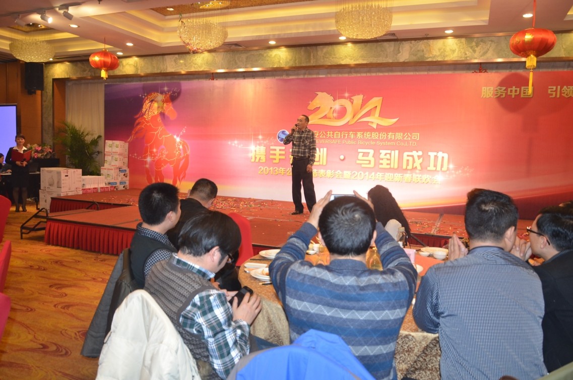 窗外寒風(fēng)嗖嗖,我們的聯(lián)歡會(huì)現(xiàn)場(chǎng)卻是一片春意濃濃。全體同事歡聚一堂,興致頗高,年會(huì)融入了輕松、和諧的聯(lián)歡氣氛,以年會(huì)及娛樂(lè)為一體,使整堂年會(huì)充滿(mǎn)了愉快溫馨。在會(huì)上,公共自行車(chē)公司董事長(zhǎng)發(fā)表了熱情洋溢的講話(huà),為我們描繪了振奮人心的發(fā)展藍(lán)圖。并為2013年的優(yōu)秀部門(mén)及優(yōu)秀員工頒發(fā)了榮譽(yù)證書(shū)。接下來(lái)的公司聯(lián)歡演出更是熱鬧非凡,公司員工載歌載舞,小品、抽獎(jiǎng)、互動(dòng)游戲?qū)映霾桓F,特別是蘇州分公司優(yōu)秀員工代表唱的一首《甜蜜蜜》更是暖入人心。聯(lián)歡會(huì)現(xiàn)場(chǎng)歡聲笑語(yǔ)響成一片。