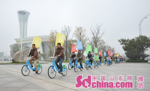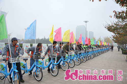 中國(guó)山東網(wǎng)濰坊頻道11月1日訊 濰坊公共自行車(chē)項(xiàng)目自去年11月1日正式運(yùn)營(yíng)以來(lái),至今已一年時(shí)間。為讓更多人選擇公共自行車(chē)出行方式,今日上午,濰坊市市政局舉行“慶祝濰坊公共自行車(chē)運(yùn)行一周年騎行活動(dòng)”,并為全市騎行數(shù)量最多和騎行時(shí)間最長(zhǎng),以及第一名辦卡的市民頒獎(jiǎng),其中騎行時(shí)間最長(zhǎng)的市民共計(jì)騎行58451分鐘,即平均每天騎行兩個(gè)半小時(shí)以上。