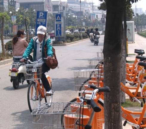 4月25日常熟公共自行車試運(yùn)營,常熟便民公共自行車服務(wù)中心的工作人員向市民介紹如何辦理公共自行車借車卡,并熱情向市民解答公共自行車的相關(guān)疑問,并有市民在街頭試騎公共自行車。