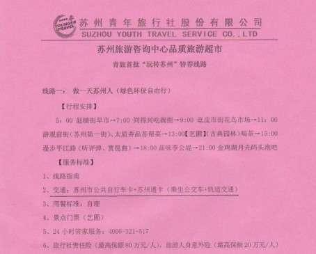 5.19—中國旅游節(jié)。為了紀(jì)念中國的第二個(gè)旅游節(jié),蘇州旅游局設(shè)在鳳凰街的旅游咨詢服務(wù)中心正式啟動(dòng),此次把蘇州公共自行車也融入到旅游產(chǎn)品之中。