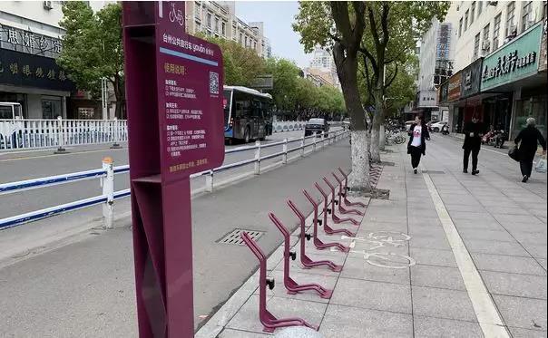 大街小巷突然出現(xiàn)的成排的紫紅色車架,就是正在逐步鋪開(kāi)的公共助力車租借點(diǎn)。