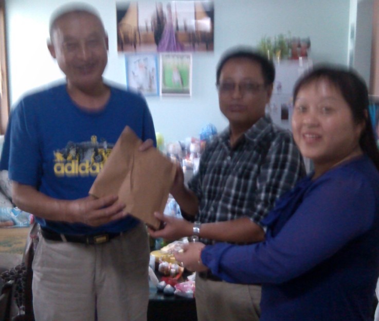 公司領(lǐng)導(dǎo)把捐款交給繆師傅